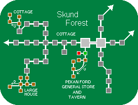 To Nowhere | ![]() | To Ohulan Cutash | At Pekan Ford's single building you can get food and drink in the bar, equip yourself in the shop, and take a room for the night before fighting off the wolves and bears of skund forest to continue your journey. If only the trees didn't grow so close together then maybe you'd be able to see what's deeper inside the forest. But be careful: it seems something homicidal has been terrorizing travellers nearby. And why are there so many boulders around here? You could almost swear that they never seem to be in the same place you saw them last.... |